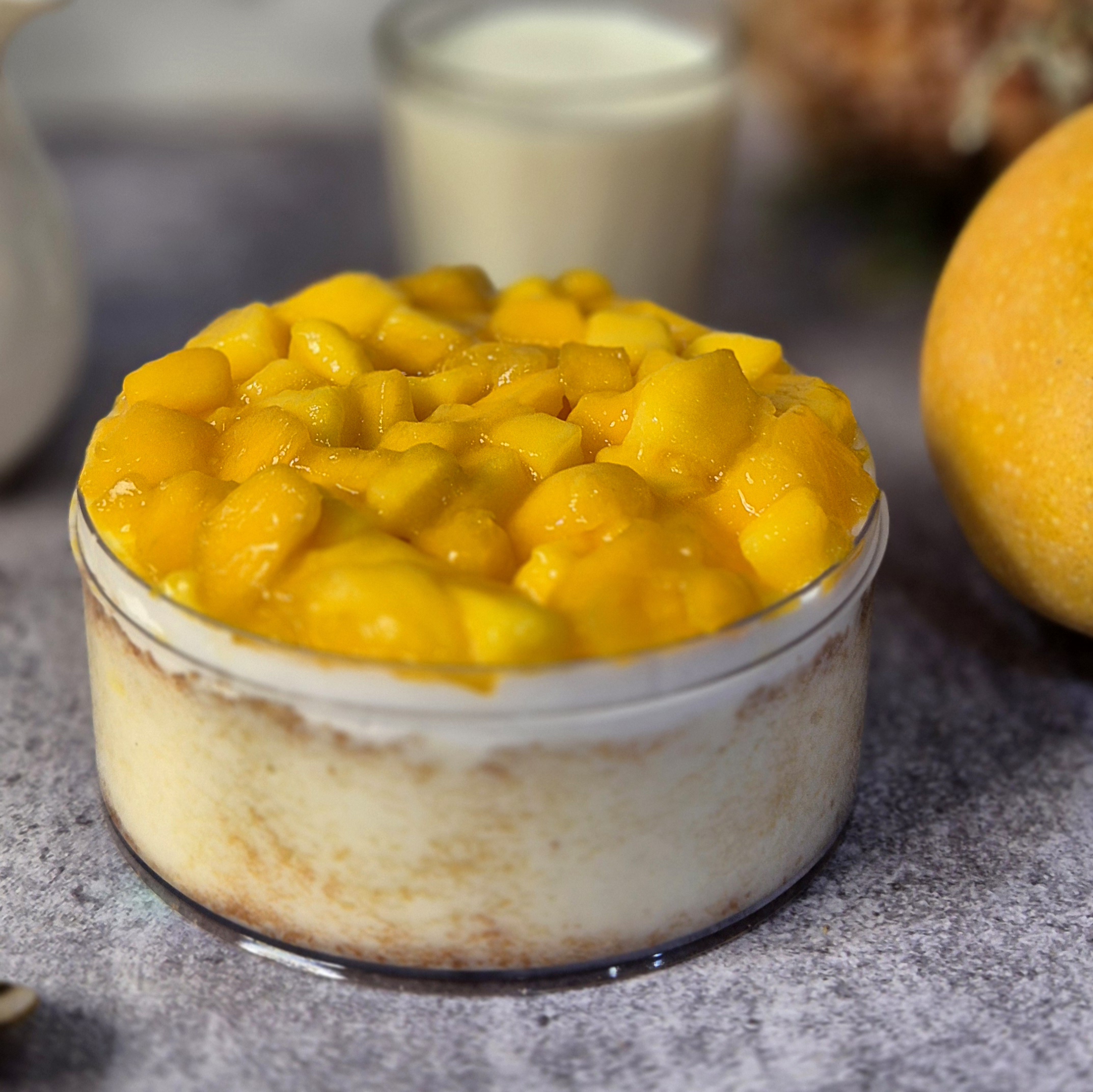 Indulge in our Mango Tres Leches Bento Cake—perfectly sized for 1–2 people. This soft, milk-soaked sponge is topped with fresh mango and light whipped cream for a creamy, tropical, and refreshing treat.